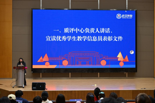 大会伊始,马光菊总结了2024-2025学年学生教学信息员工作开展情况,并宣读《武院教〔2025〕32号关于公布2024-2025学年优秀学生教学信息员名单的通知》。2024-2025学年,共评选出5名“优秀院级学生教学信息员”和86名“优秀班级学生教学信息员”。